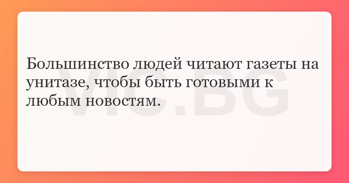 Большинство людей читают газеты на унитазе, чтобы быть готовыми к любым новостям.