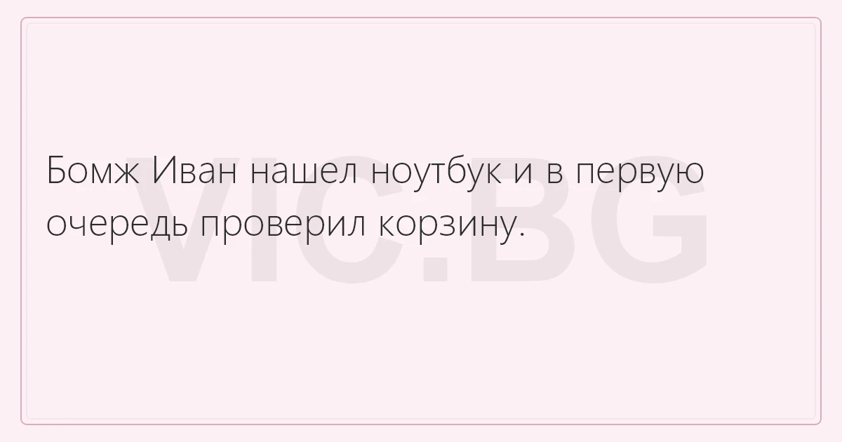 Бомж Иван нашел ноутбук и в первую очередь проверил корзину.