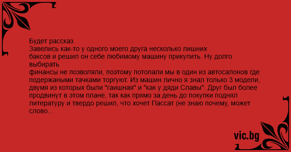 баксов и решил он себе любимому машину прикупить. Ну долго выбирать