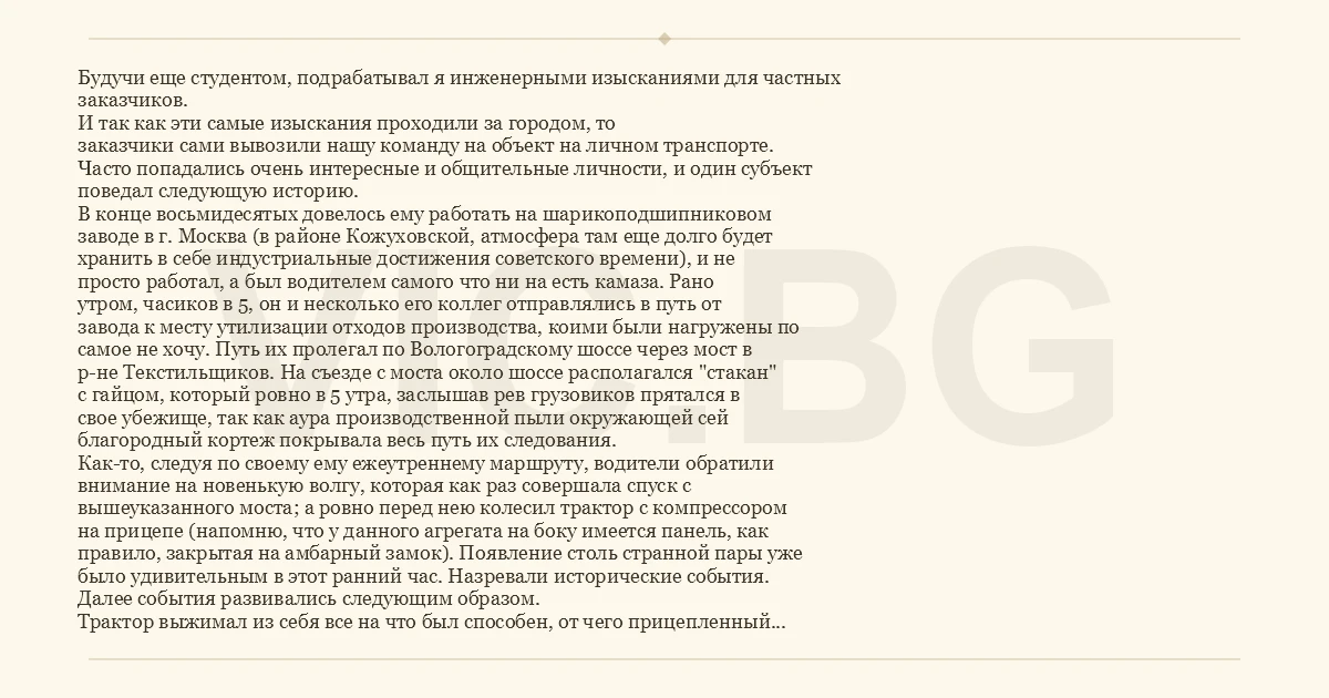 Будучи еще студентом, подрабатывал я инженерными изысканиями для частных
