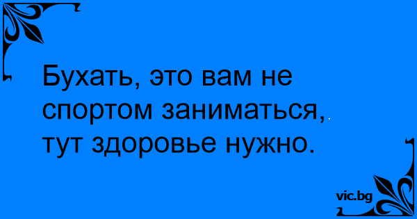 Бухать, это вам не спортом заниматься, тут здоровье нужно.