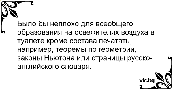 Было бы неплохо для всеобщего образования на освежителях воздуха в туалете кроме состава печатать, например, теоремы по геометрии, законы Ньютона или страницы русско-английского словаря.