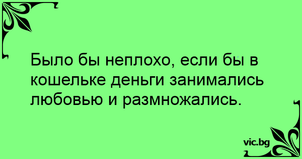 Было бы неплохо, если бы в кошельке деньги занимались любовью и размножались.