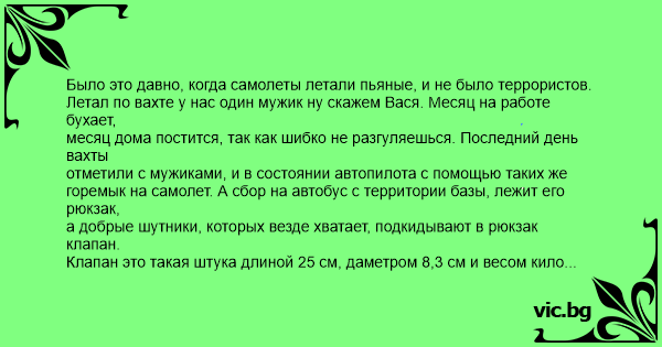 Было это давно, когда самолеты летали пьяные, и не было террористов.