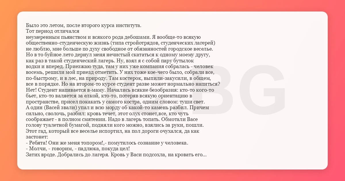 как раз в такой студенческий лагерь. Ну, взял я с собой пару бутылок