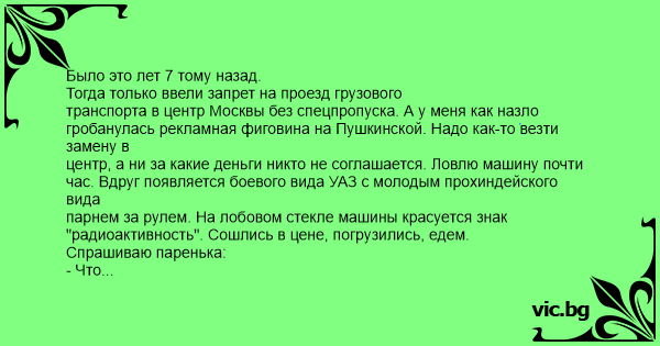 "радиоактивность". Сошлись в цене, погрузились, едем.