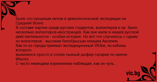 Было это прошлым летом в археологической экспедиции на Средней Волге.