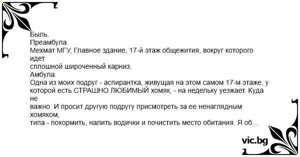 важно. И просит другую подругу присмотреть за ее ненаглядным хомяком,