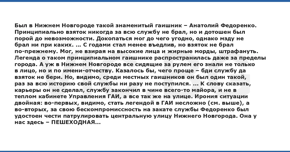 Был в Нижнем Новгороде такой знаменитый гаишник – Анатолий Федоренко.