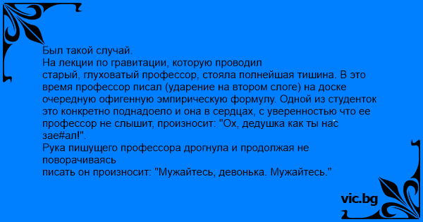 профессор не слышит, произносит: "Ох, дедушка как ты нас зае#ал!".