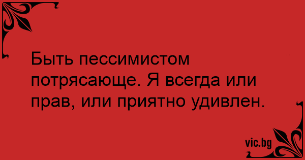 Быть пессимистом потрясающе. Я всегда или прав, или приятно удивлен.