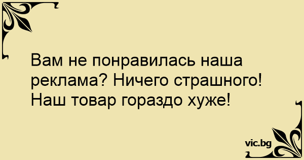 Вам не понравилась наша реклама? Ничего страшного! Наш товар гораздо хуже!