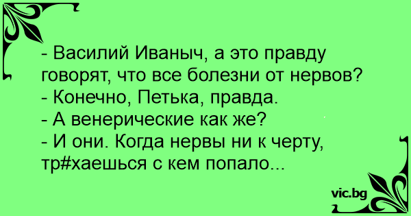 - Василий Иваныч, а это правду говорят, что все болезни от нервов?
