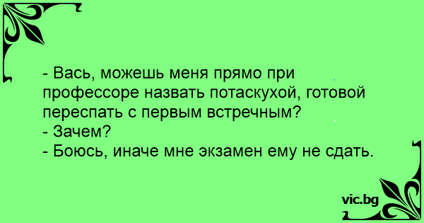 - Вась, можешь меня прямо при профессоре назвать потаскухой, готовой переспать с первым встречным?