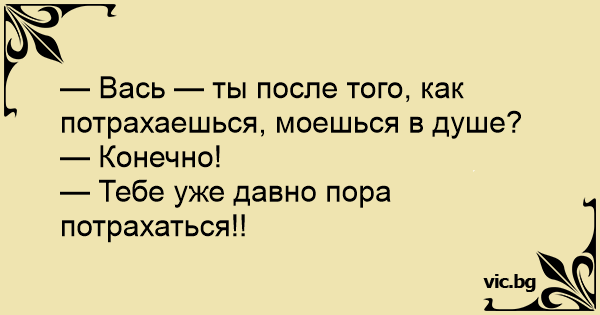 — Василь - ти після того, як потрахєшся, миєшся в душі? — Звичайно! — Тобі вже давно настав час потрахатисся!