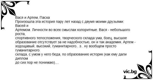 Вася и Артем, Пасха Произошла эта история пару лет назад с двумя моими друзьями: