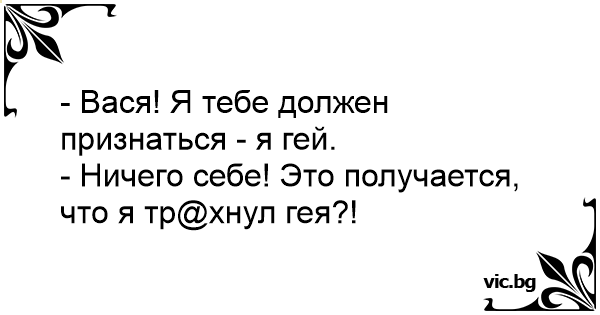 - Вася! Я тебе должен признаться - я гeй.<br />- Ничего себе! Это получается, что я тр@хнул гея?!