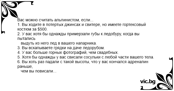 Вас можно считать альпинистом, если...