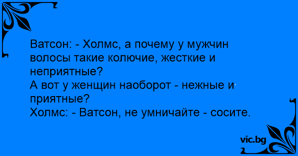 Ватсон: - Холмс, а почему у мужчин волосы такие колючие, жесткие и неприятные?