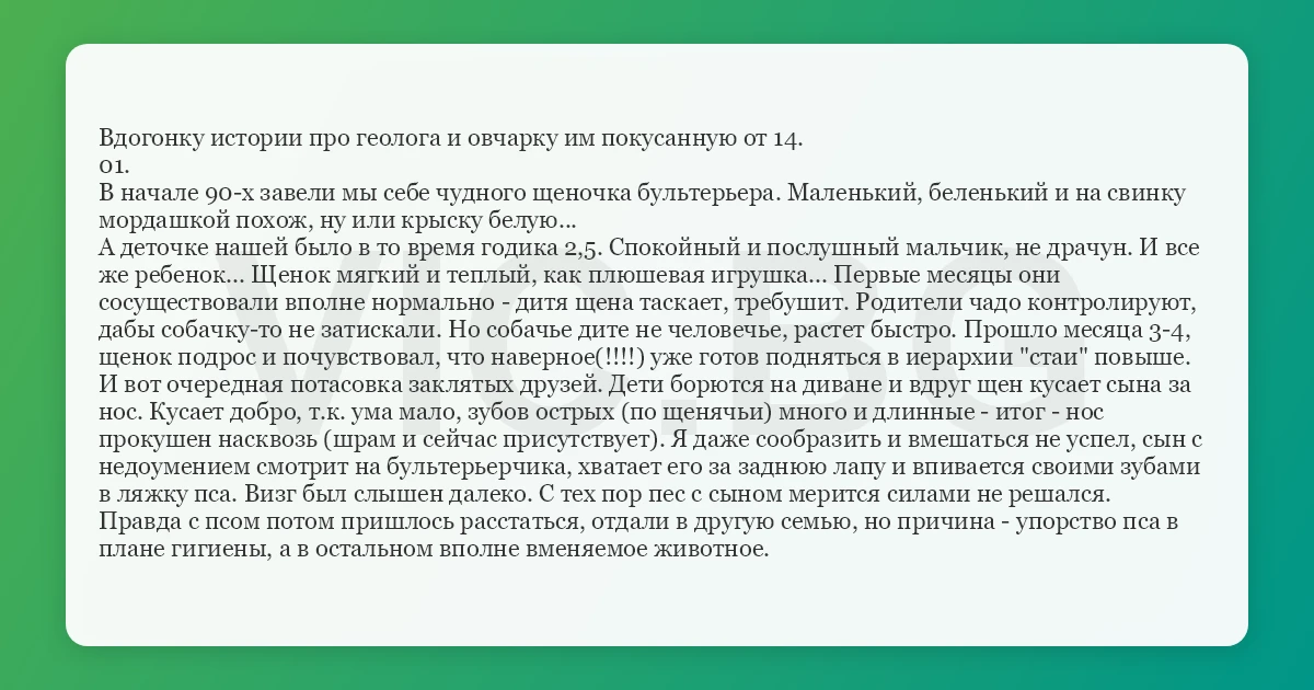 Вдогонку истории про геолога и овчарку им покусанную от 14.
