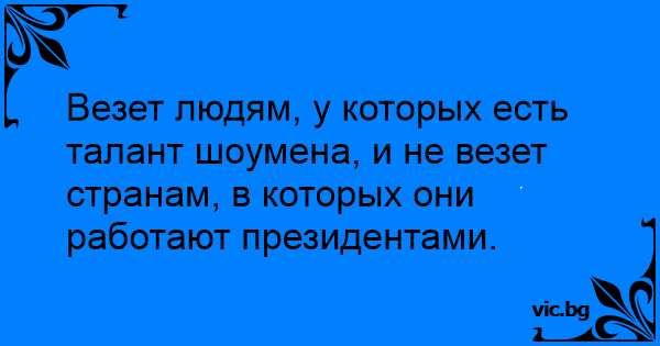 Везет людям, у которых есть талант шоумена, и не везет странам, в которых они работают президентами.