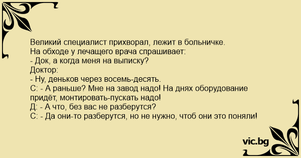 Великий специалист прихворал, лежит в больничке.