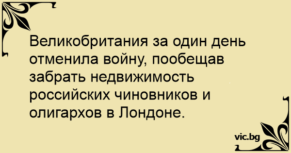 Великобритания за один день отменила войну, пообещав забрать недвижимость российских чиновников и олигархов в Лондоне.