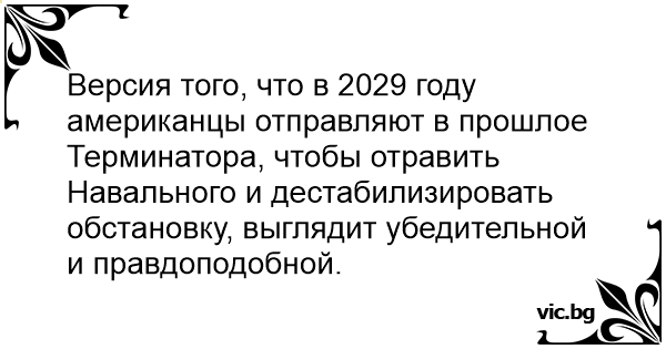 Версия того, что в 2029 году американцы отправляют в прошлое Терминатора, чтобы отравить Навального и дестабилизировать обстановку, выглядит убедительной и правдоподобной.