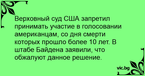 Верховный суд США запретил принимать участие в голосовании американцам, со дня смерти которых прошло более 10 лет. В штабе Байдена заявили, что обжалуют данное решение.