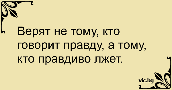 Верят не тому, кто говорит правду, а тому, кто правдиво лжет.