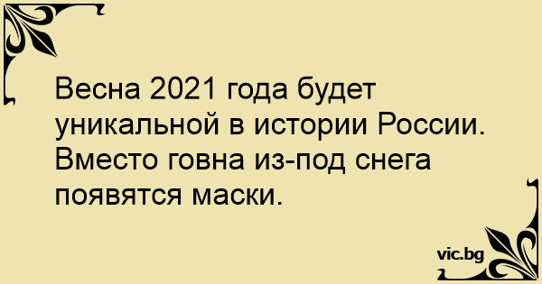 Весна 2021 года будет уникальной в истории России. Вместо говна из-под снега появятся маски.