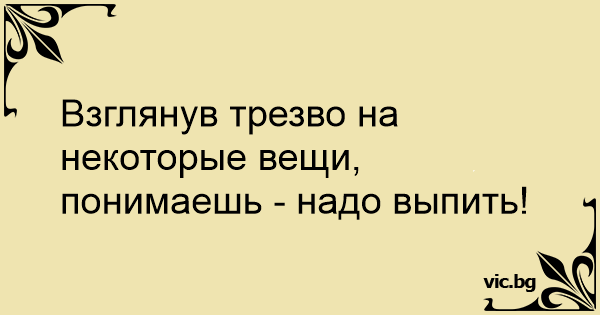Взглянув трезво на некоторые вещи, понимаешь - надо выпить!