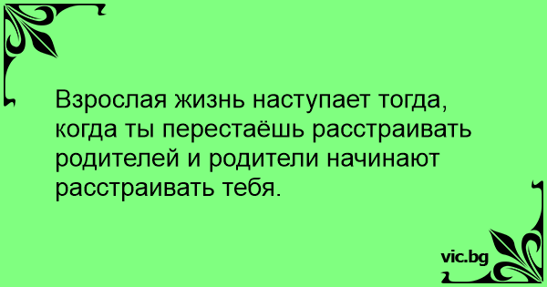 Взрослая жизнь наступает тогда, когда ты перестаёшь расстраивать родителей и родители начинают расстраивать тебя.