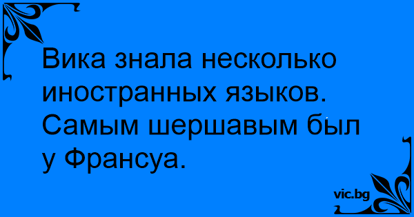 Вика знала несколько иностранных языков. Самым шершавым был у Франсуа.