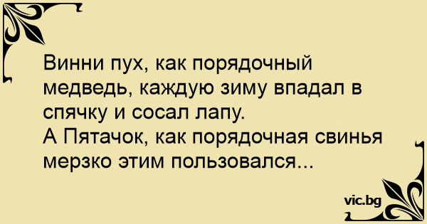 Винни пух, как порядочный медведь, каждую зиму впадал в спячку и сосал лапу.