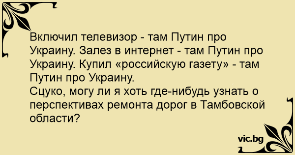 Включил телевизор - там Путин про Украину. Залез в интернет - там Путин про Украину. Купил «российскую газету» - там Путин про Украину.
