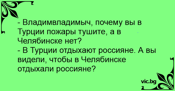 - Владимвладимыч, почему вы в Турции пожары тушите, а в Челябинске нет?