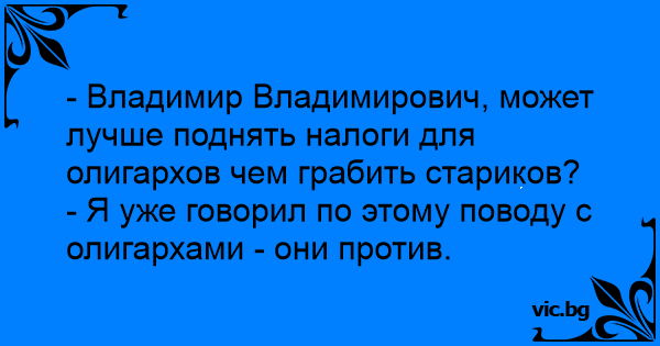- Владимир Владимирович, может лучше поднять налоги для олигархов чем грабить стариков?
