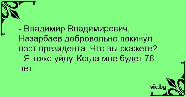 - Владимир Владимирович, Назарбаев добровольно покинул пост президента. Что вы скажете?