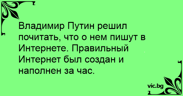 Владимир Путин решил почитать, что о нем пишут в Интернете. Правильный Интернет был создан и наполнен за час.