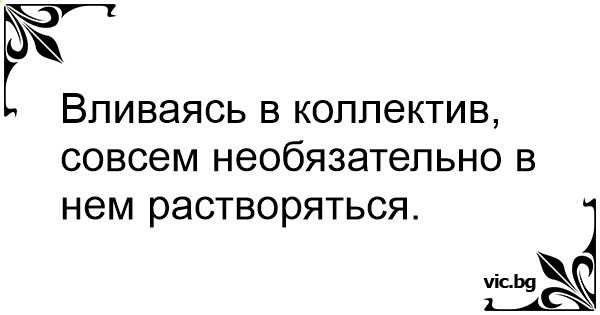 Вливаясь в коллектив, совсем необязательно в нем растворяться.