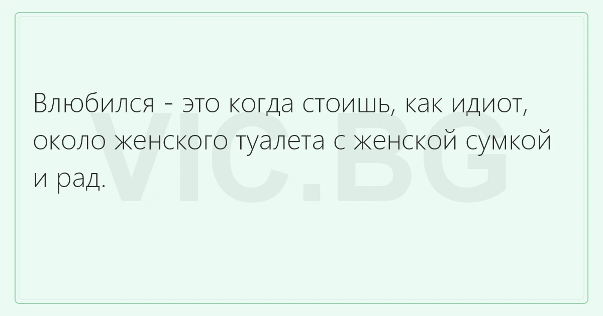 Влюбился - это когда стоишь, как идиot, около женского туалета с женской сумкой и рад.