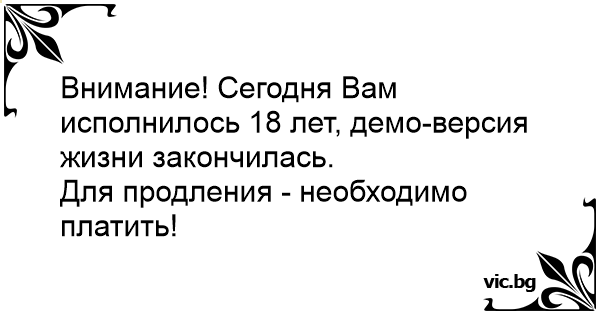 Внимание! Сегодня Вам исполнилось 18 лет, демо-версия жизни закончилась.