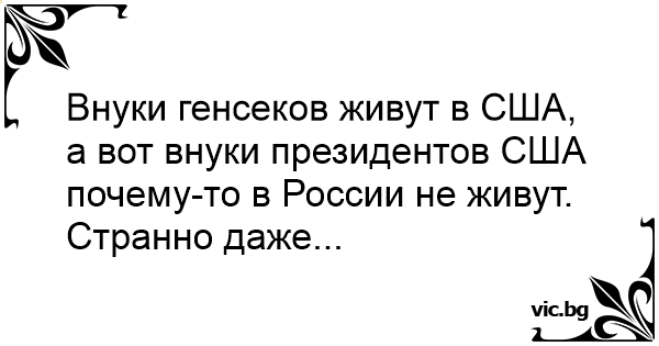 Внуки генсеков живут в США, а вот внуки президентов США почему-то в России не живут. Странно даже...