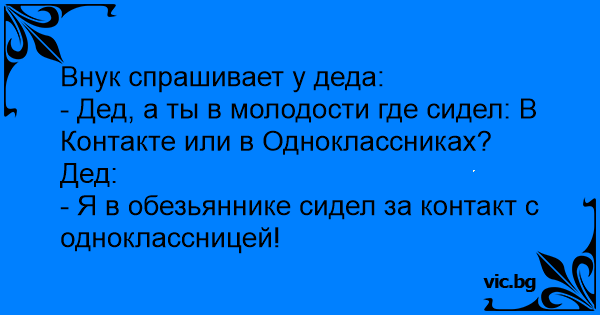 - Дед, а ты в молодости где сидел: В Контакте или в Одноклассниках?