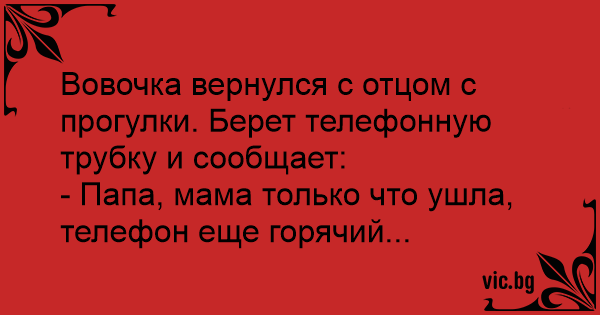 Вовочка вернулся с отцом с прогулки. Берет телефонную трубку и сообщает: