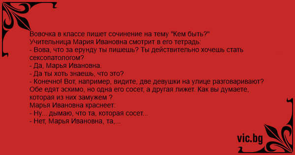 Вовочка в классе пишет сочинение на тему "Кем быть?"