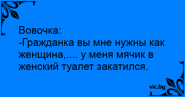 -Гражданка вы мне нужны как женщина,.... у меня мячик в женский туалет закатился.
