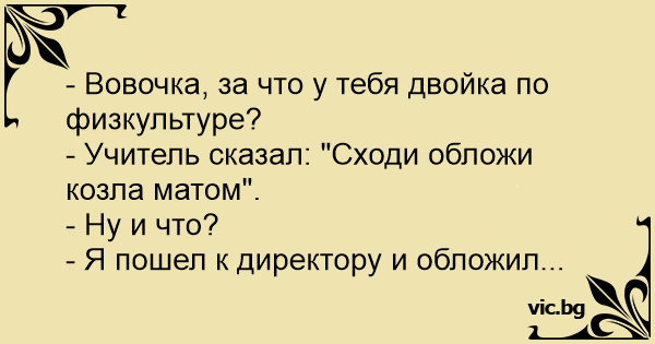 - Вовочка, за что у тебя двойка по физкультуpе?