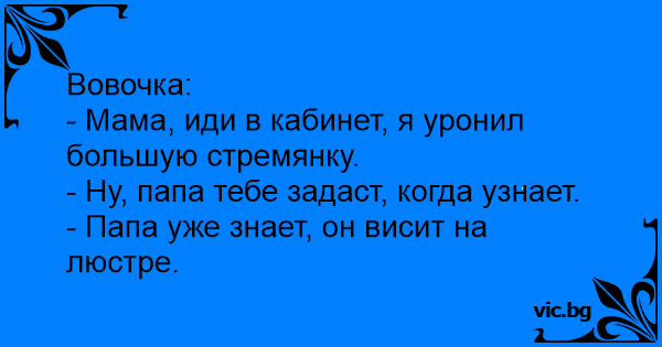 - Мама, иди в кабинет, я уронил большую стремянку.